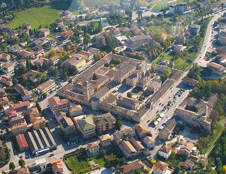 Le mura castellane, di forma quadrangolare (144 per 137) metri, furono progettate dall’architetto Bracci nel XVIII secolo. Con tre imponenti porte d’accesso, l’architettura urbana richiama la forma di una croce, evidenziata dall’incrocio ortogonale delle due vie principali che conducono alla collegiata.